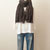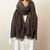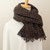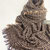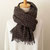 糸にはループヤーンを使用しており、凝った生地の風合いがとっても可愛い。防寒にも最適な暖かいマフラータイプで柔らかな質感と軽さは嬉しいポイントです。また、155cmなので小柄な方にも使いやすいサイズです。写真のトルソーのように程よい厚みがありながら、自然なドレープが現れます。