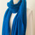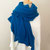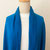 写真19枚目のトルソーの肩を写している色が1番近い色で、ほんのり水色を感じさせるウォーム感のあるお色です。モケット生地のブルーのような雰囲気を持った色味で、巻いた時や光の当たった時の陰影がとにかく素敵!