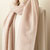 カシミアシルクのさりげない光沢感があり、嬉しい肌触りとお顔周りの肌映りもバッチリです。ふんわりとした肌触りは触れていないくらいの心地よい柔らかさ。