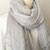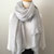 薄手の大判なので空気をしっかりと含ませて巻くことで、顔まわりに優しく寄り添ってくれ、ワントーン明るくしてくれます。
