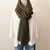 ジャガード折りの厚手の生地なのでショールとして羽織るのにぴったり。昼休みのちょっとそこまでの羽織りとして、いつものコートの上にサッと巻いたり、ピンで留めてケープ仕様もGood。