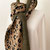 ファリエロ・サルティでは珍しく、しっかり目の詰まった織地で表面がヒョウ柄、裏側はメタリックなリバーシブル仕様になっています。厚手のストールで暖かいものをお求めの方に特におすすめです。