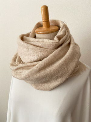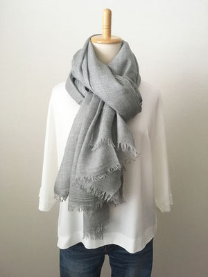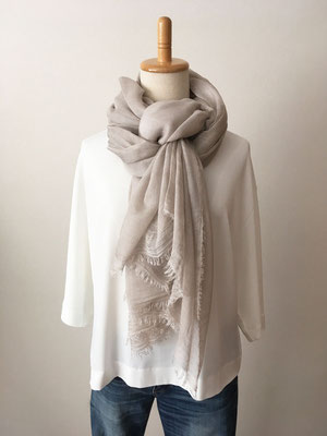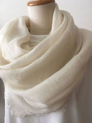 カシミヤシルクの上質素材のふんわり温かな定番商品。真夏以外は季節問わず使えます。